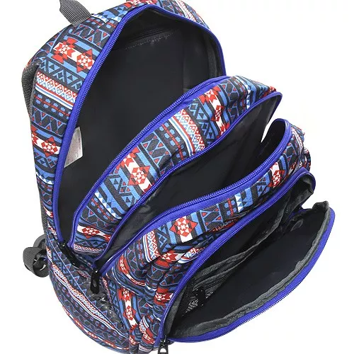 Batoh na volný čas Target, modrý s červenými vzory. Textilní batoh na volný čas značky Target. Trendový dvoukomorový batoh na volný čas se hodí i do školní výbavy především starším školákům, kteří mají hodně zájmů.